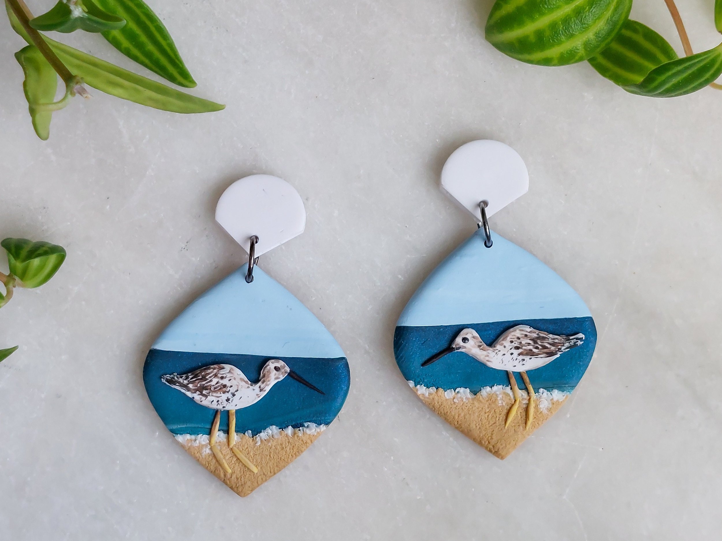 These Sandpiper earrings are little artistic vignettes featuring tiny Sandpipers that have been delicately sculpted and hand painted, standing on the sandy shore of the ocean. Intricately detailed and one of a kind, they are a great gift for a bird lover, naturalist, Audubon enthusiast, friend, loved one, or yourself. The list goes on!